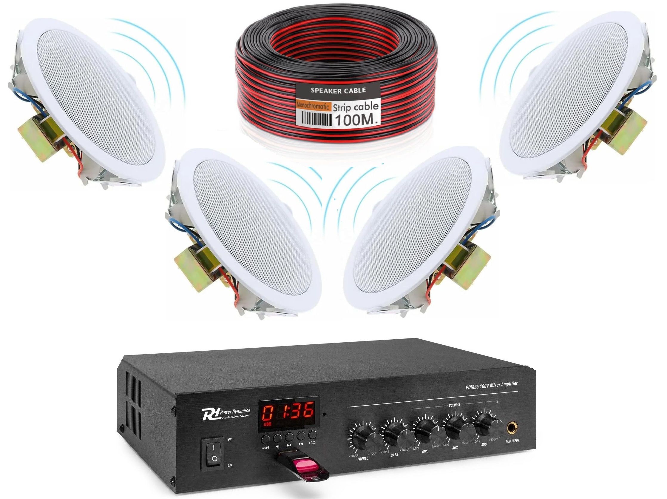 IMPIANTO AUDIO COMPLETO PER FILODIFFUSIONE LOCALI, PUB, SUPERMERCATI 100V