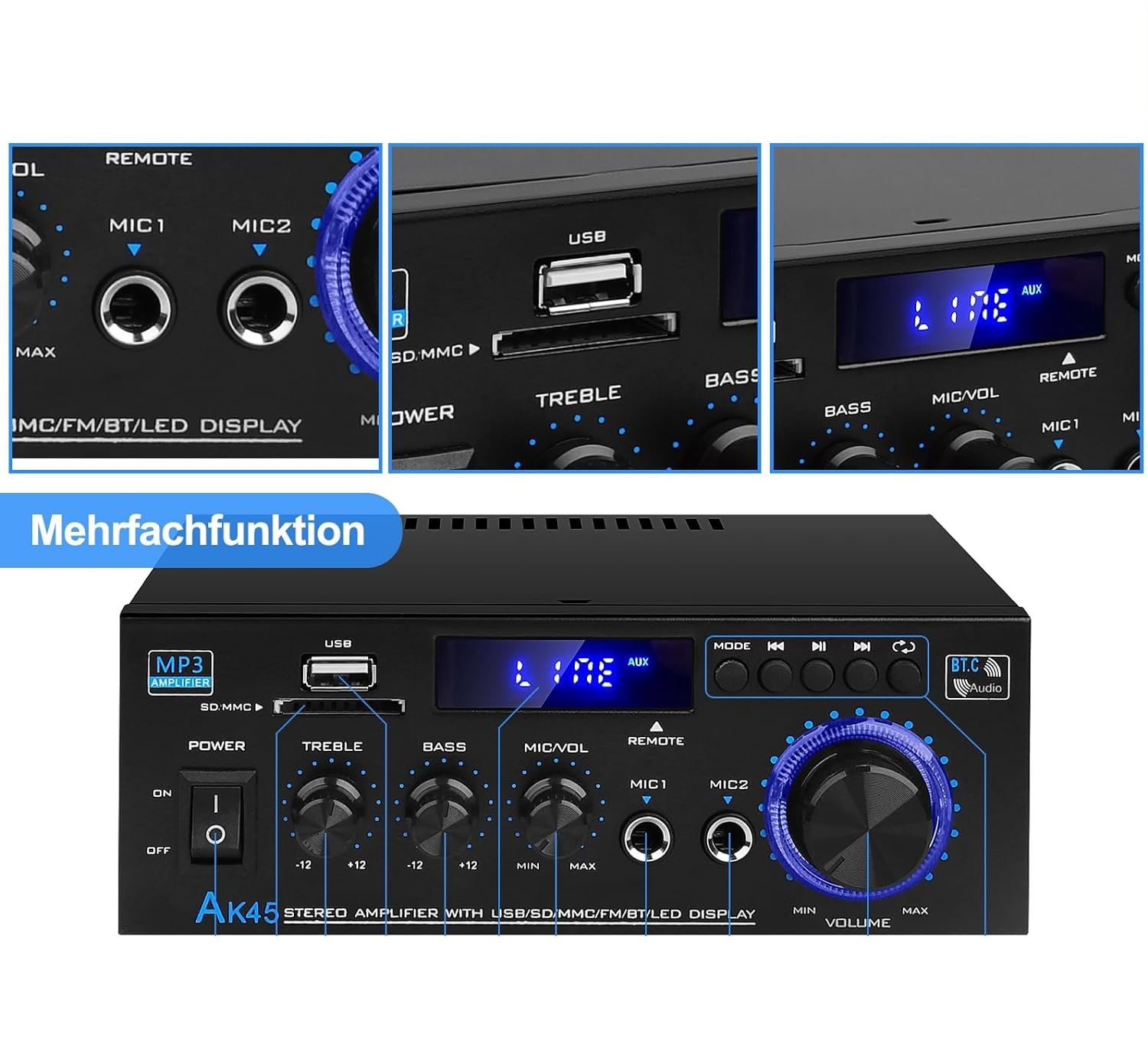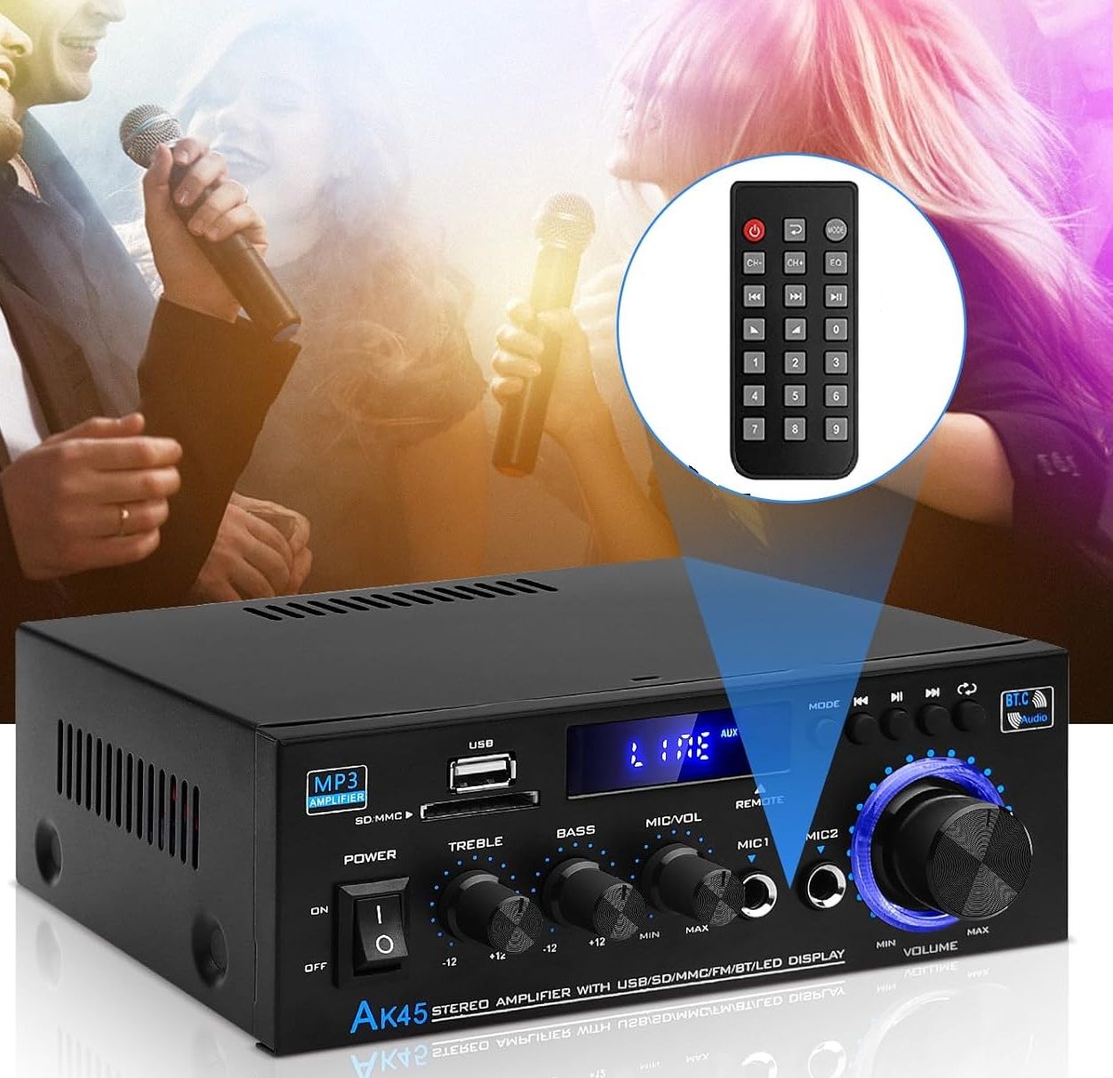 Con ingresso MIC e pulsante del volume indipendente - L'amplificatore audio Bluetooth AK-45 ha due