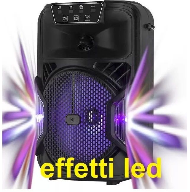 CASSA BLUETOOTH PORTATILE RICARICABILE BATTERIA CON LED + USB PORTATILE