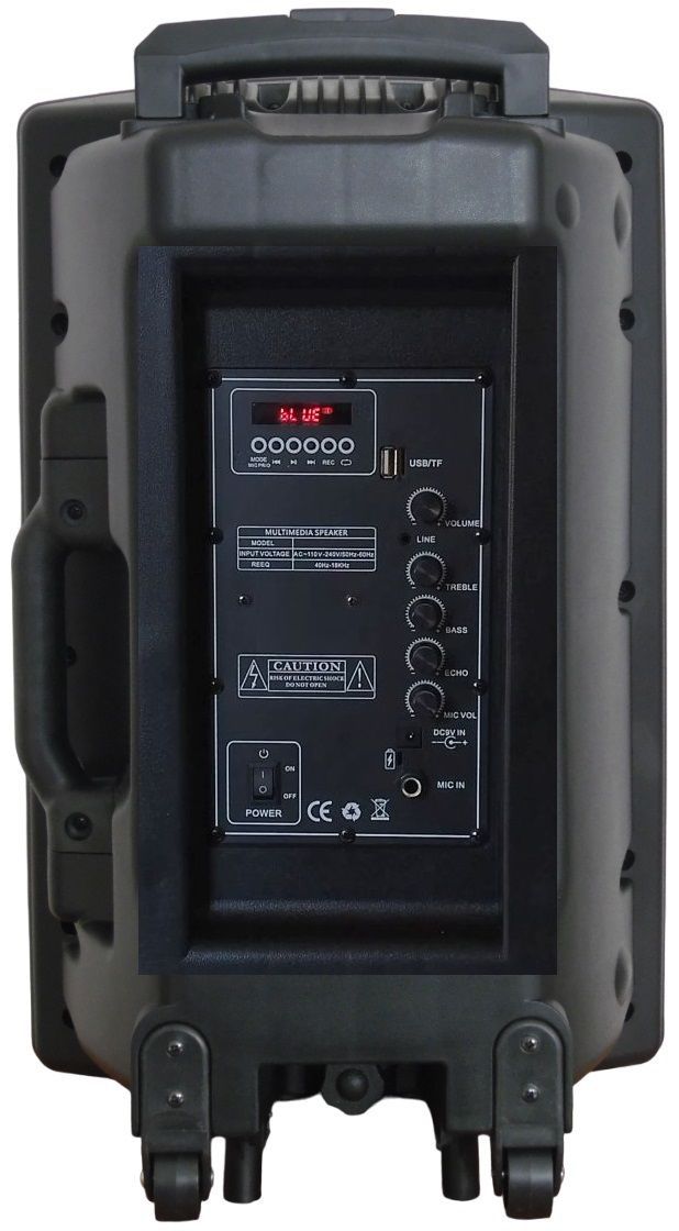cassa amplificata ricaricabile usb/sd/radio + display e funzione trolley