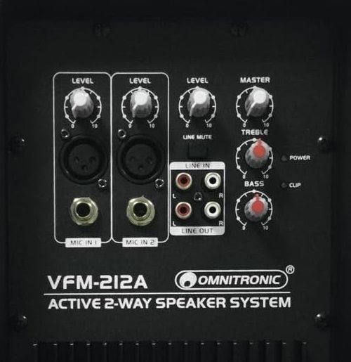 Le OMNITRONIC VFM-212A sono speaker attivi con Circuito di classe A/B, Bass-reflex a 2 vie, 1 ingresso mic con controlli di livello separati, ingresso di linea, RCA, controllo principale con controllo tono bidirezionale, clip e LED di alimentazione, uscita di linea per il collegamento di altri diffusori attivi sistemi.