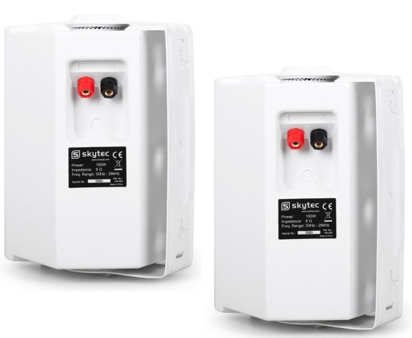 una coppia di altoparlanti da parete a 2 vie , in abs con griglia di metallo robusto.