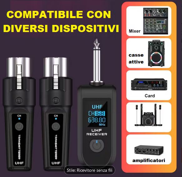 ADATTATORE MICROFONO CONVERTITORE DA MICROFONO CON FILO IN WIRELESS IN UHF