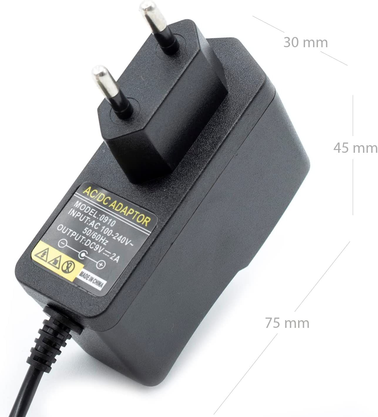 Alimentatore 9V 2A - Caricatore 9v - Jack di collegamento è di 5,5 mm Ø Esterno e 2,1 mm Ø Interno