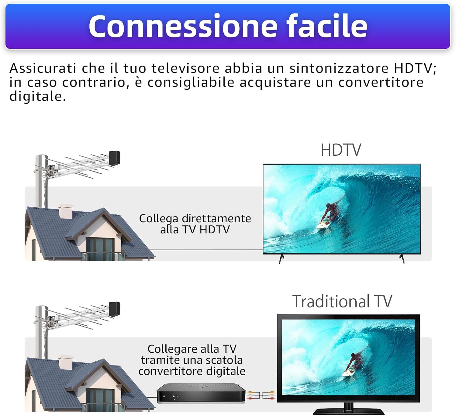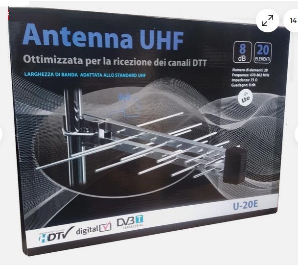 • ANTENNA TV ESTERNA YAGI DVB T2 20 ELEMENTI DIGITALE TERRESTRE 8 dBi