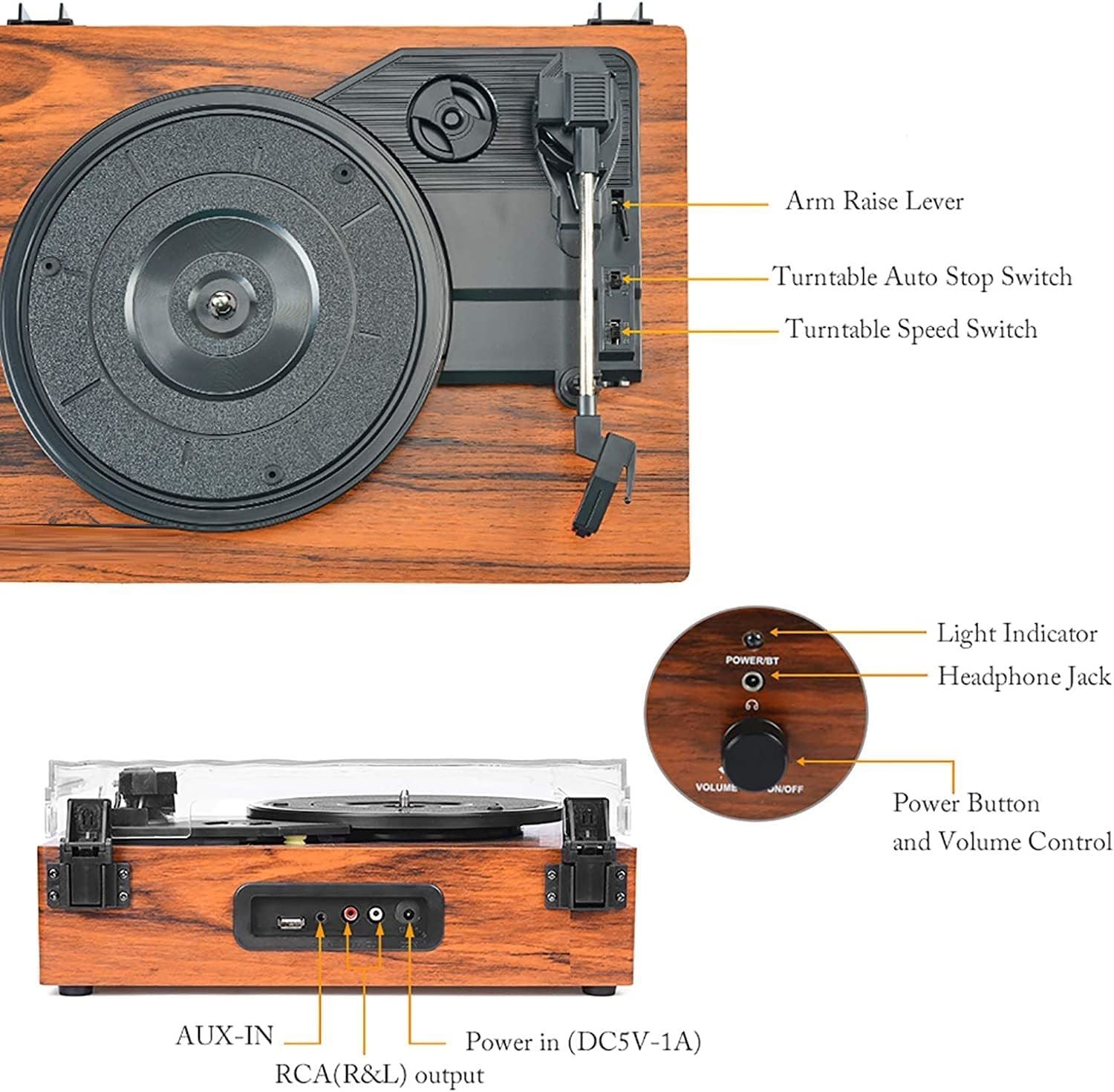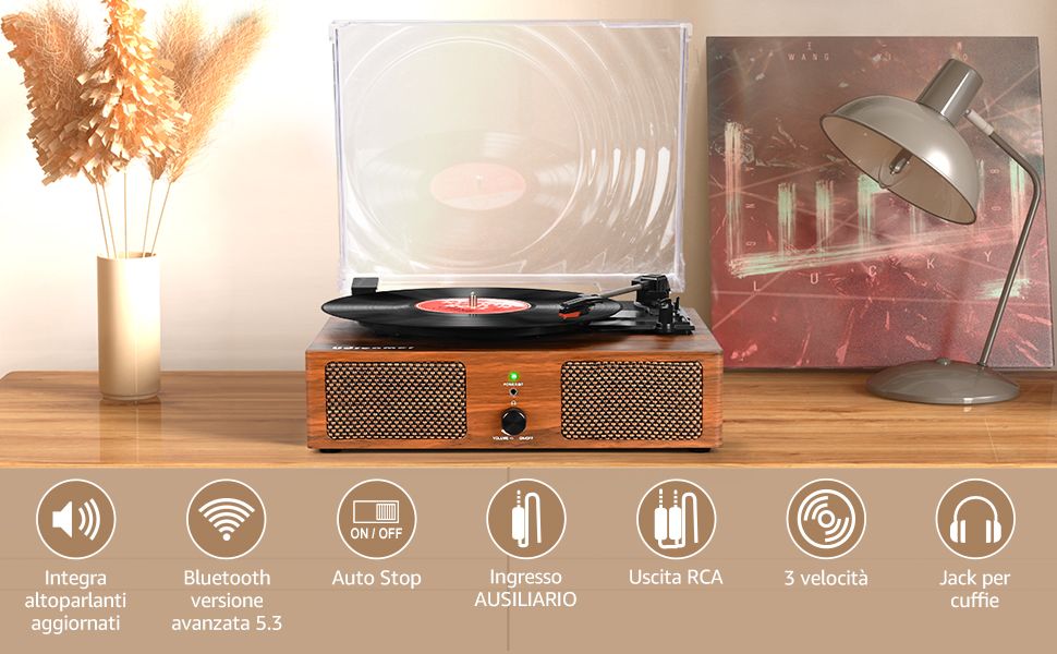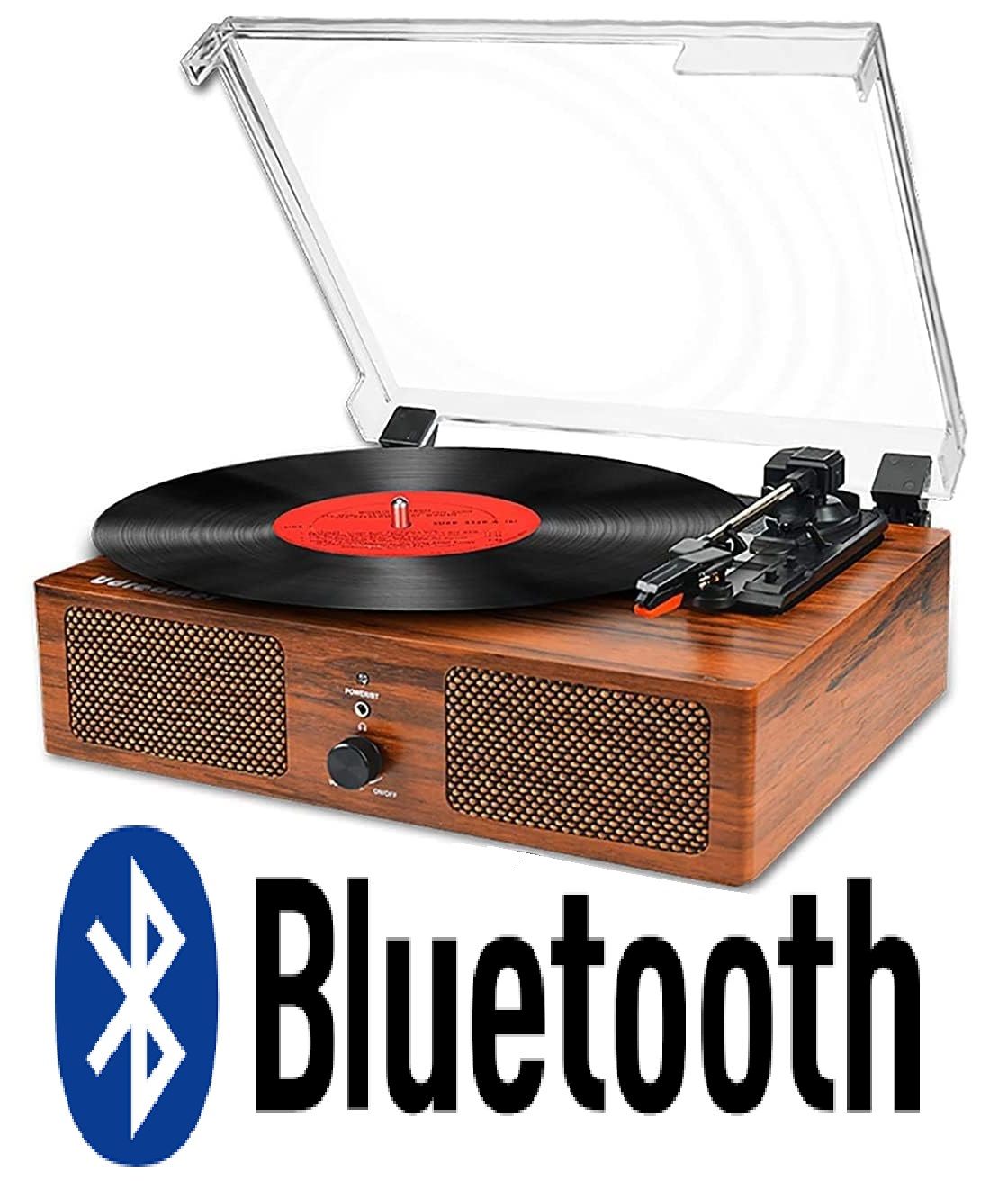GIRADISCHI BLUETOOTH VINILE STILE VINTAGE USB ALTOPARLANTI 33/45/78 GIRI TRAZIONE CINGHIA