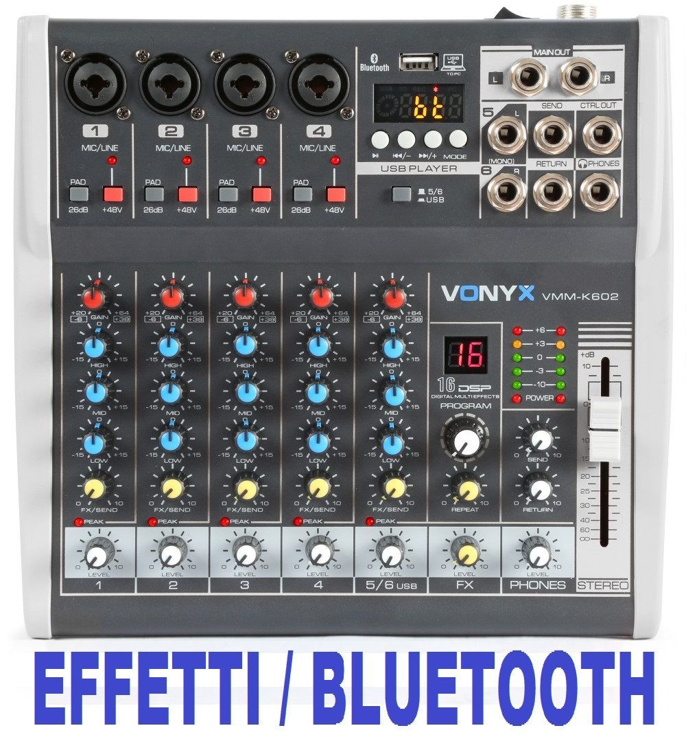 MIXER PROFESSIONALE 6 CANALI CON BLUETOOTH