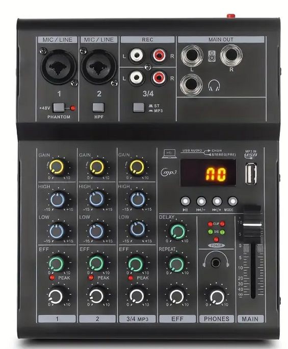 CONSOLE professionale a 4 canali Processore di effetti Aux Paths Plus e Bluetooth.