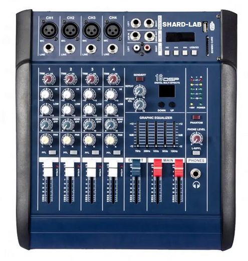 Mixer amplificato stile console in grado di fornire 300 watt stereo rms, effetti stupefacenti