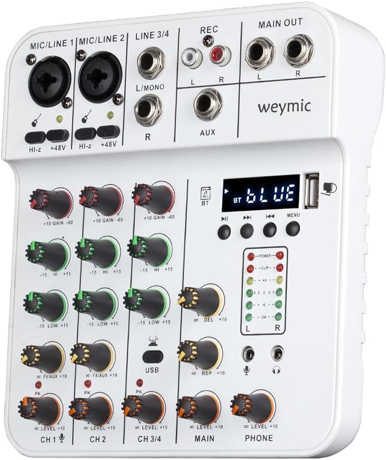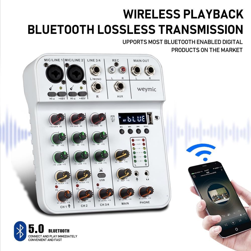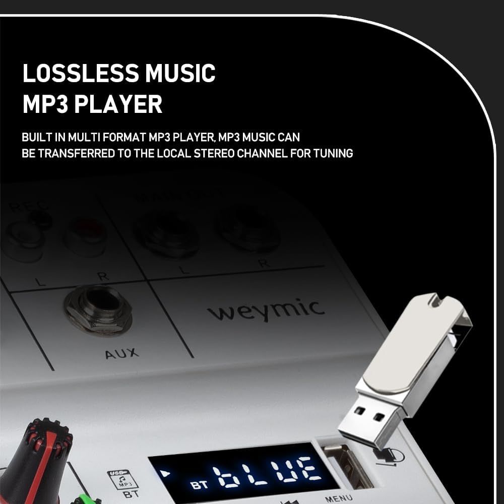 MIXER AUDIO USB CON BLUETOOTH + DISPLAY + USB-SD 4 CANALI
