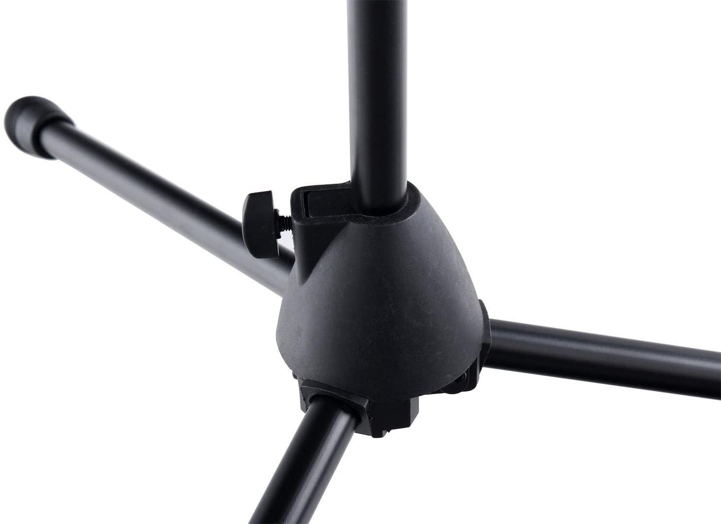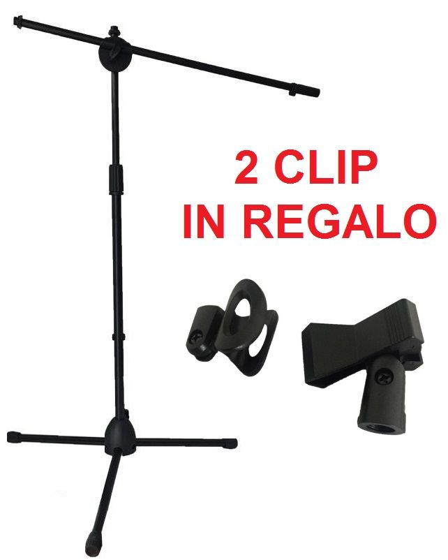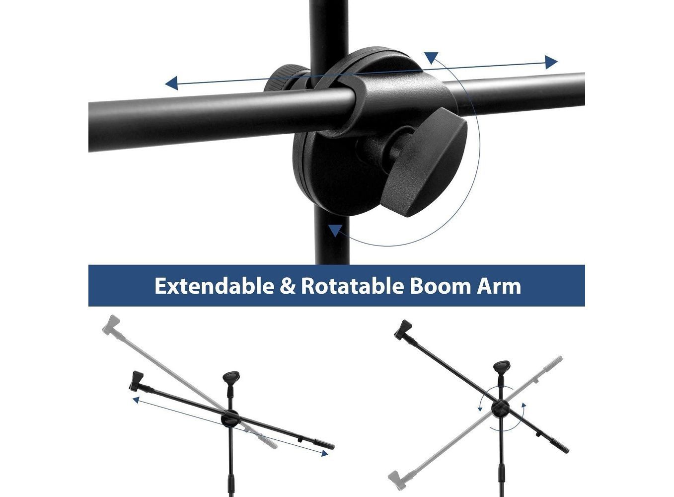 Stativo per microfono leggero e con braccio girevole, piedi pieghevoli, inclinazione e altezza regolabili.