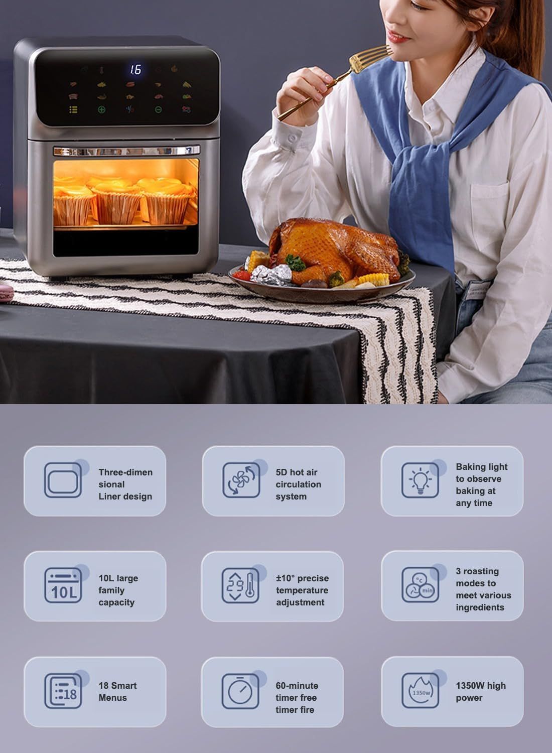 Porta la tua cucina a un livello superiore con questa versatile friggitrice ad aria da 12 litri! Questo elettrodomestico multifunzione è progettato per semplificarti la vita in cucina, offrendo una cottura sana e gustosa per tutta la famiglia.